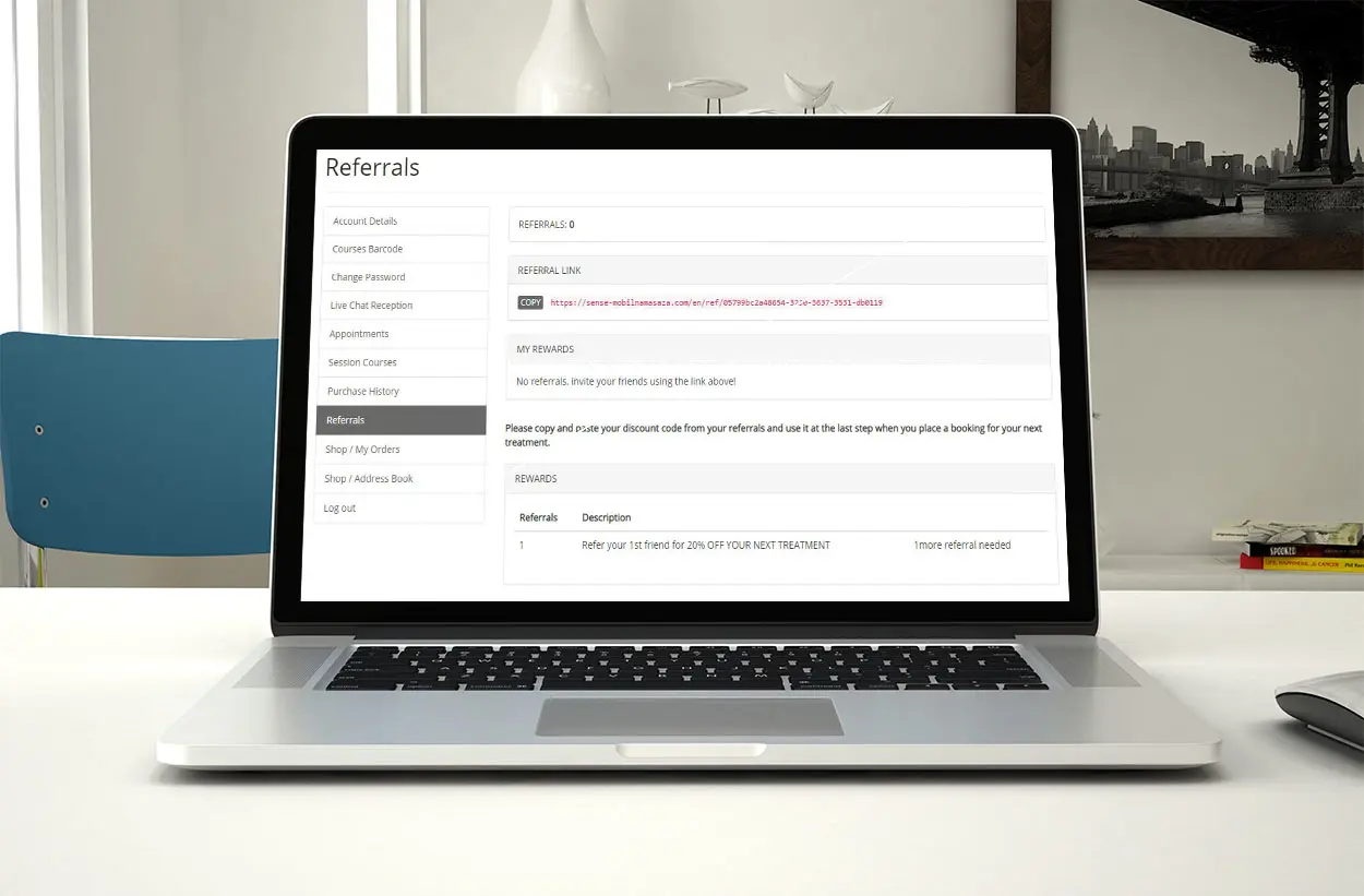 4. Reward the first referral. This reward is for existing clients who have referred. Customise the reward to a customer the firt time one of their referrals books your new client offer. Percent off / Money Off / Custom / Package/Membership. View a sample email