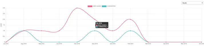 Below the lead table we display a chart indication total number of leads vs converted.