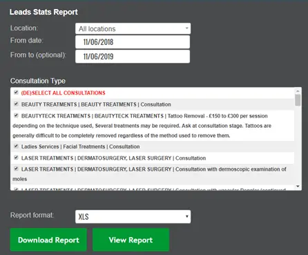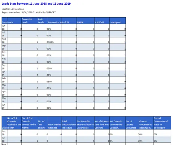 This report will also allow you to track number of 1st consults, second, no shows, consults attended, total unsuitable, net consults and quotes conversion.