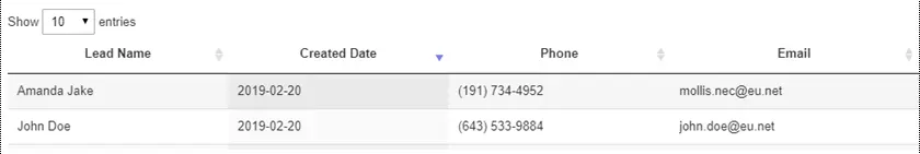The leads table is paginated, if you need to display mode entries per page, you can change the value from the “Show entries” dropdown.